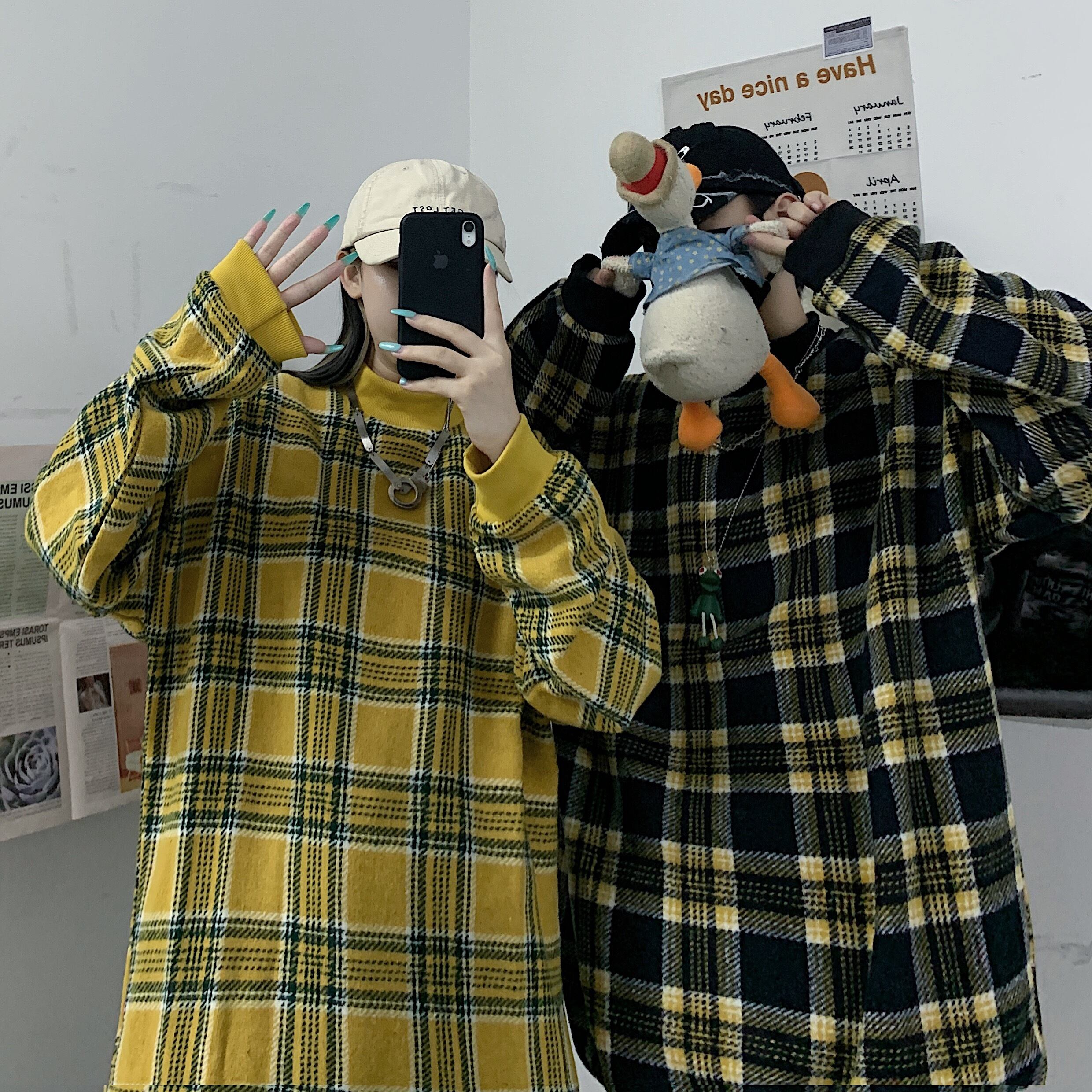 2020年の新しい秋冬バージョンのインレトロチェック柄カップルニットトップルーズ長袖プラスベルベットセーター女性トレンド Brother_is_Style40619826919
