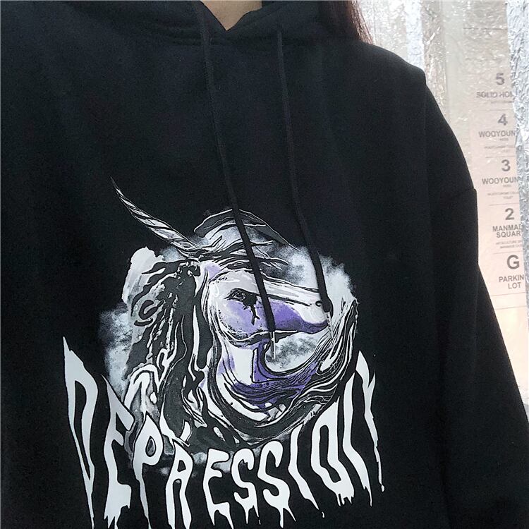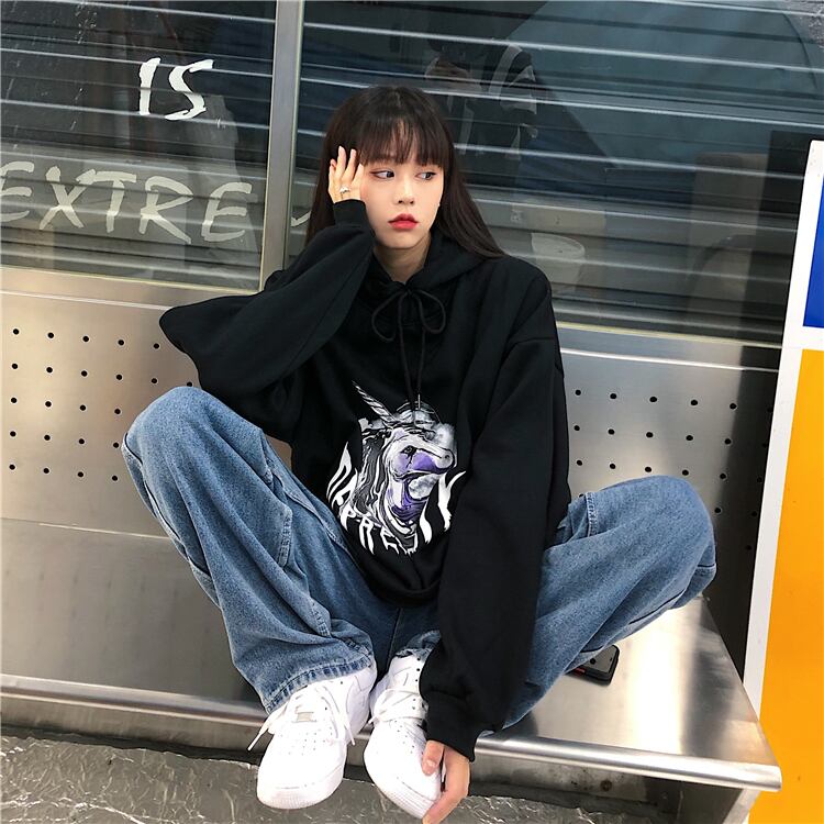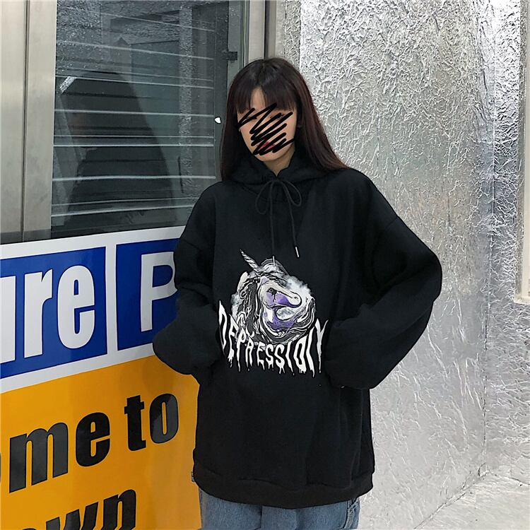 フード付きセーターの女性2020年秋冬新バージョンインストリートグラフィティブラックルーズ長袖プラスベルベットジャケットタイド Brother_is_Style50073896368