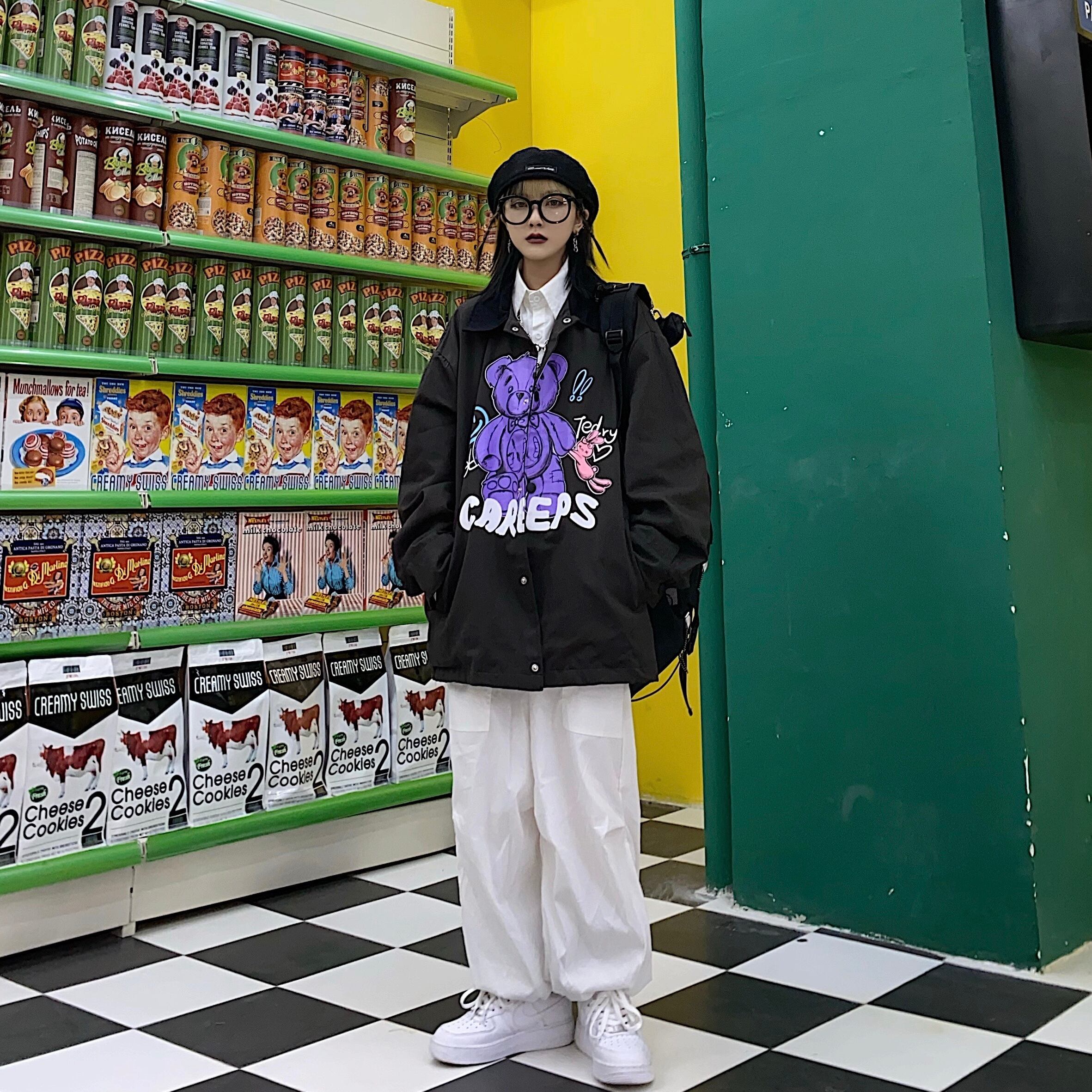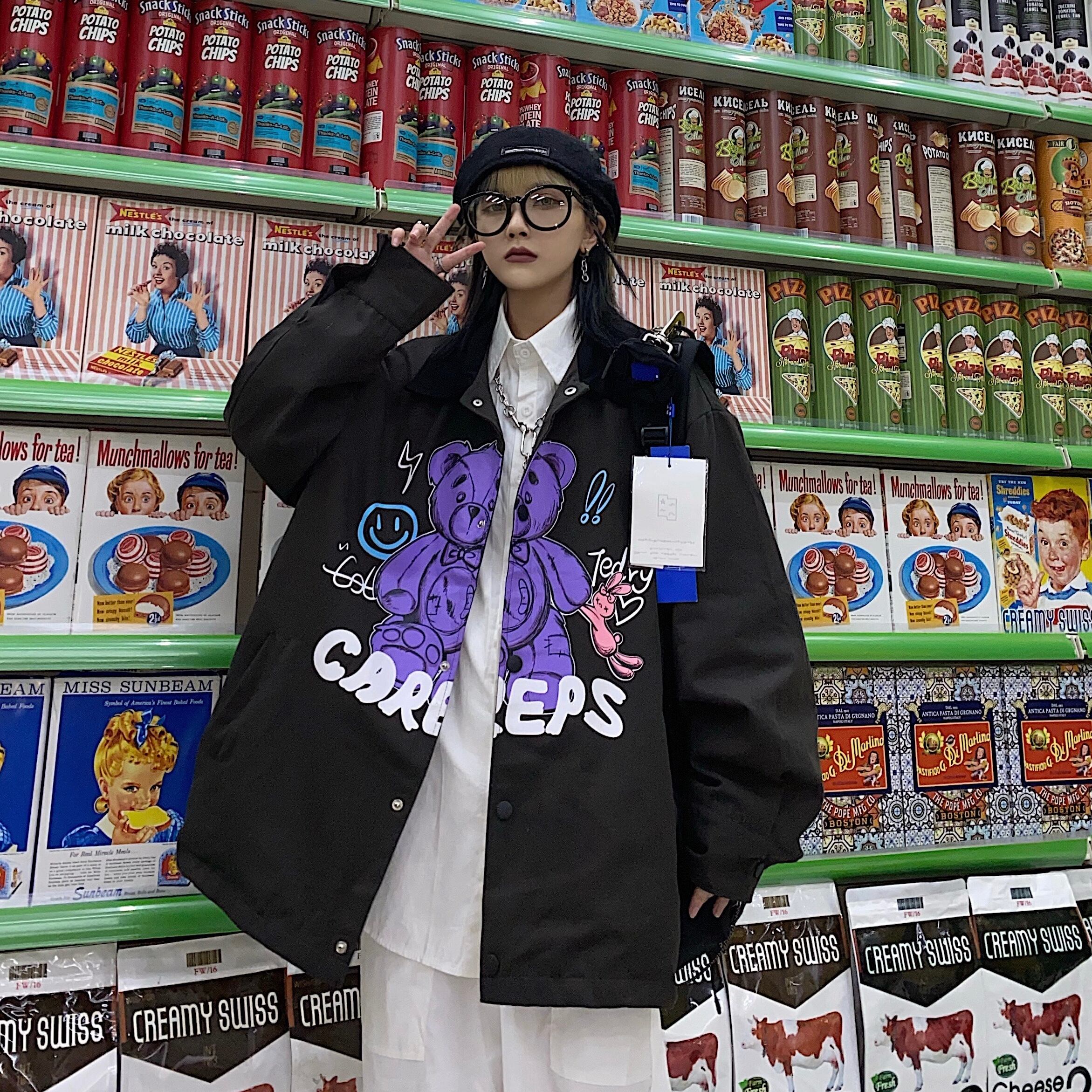 ワークウェアジャケット女性2020年秋新バージョンinsグラフィティベアカジュアルジャケットルーズカーディガントップトレンド Brother_is_Style33911315267