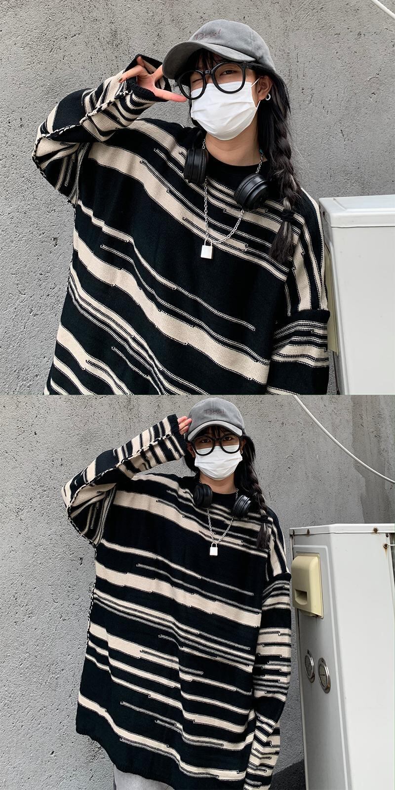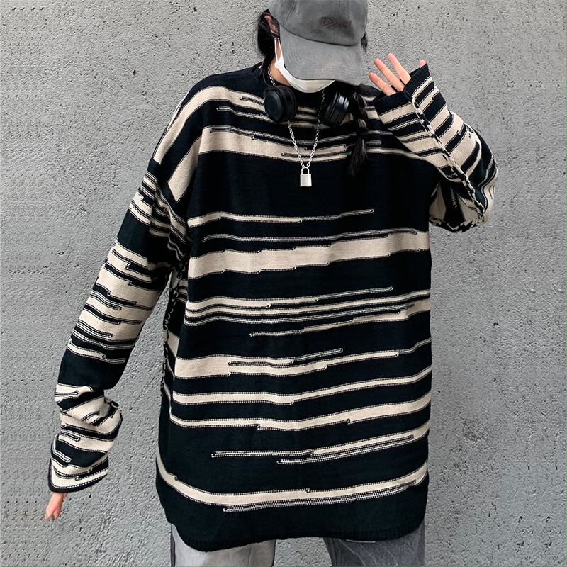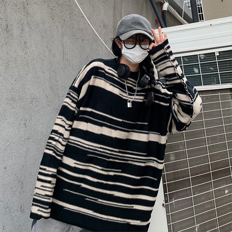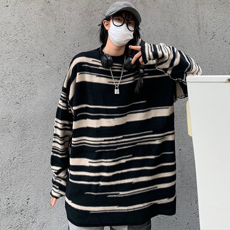 2020年秋冬新バージョンインセレイジースタイルストライプ長袖セータールーズプルオーバーセーター女性トレンド Brother_is_Style87018178111