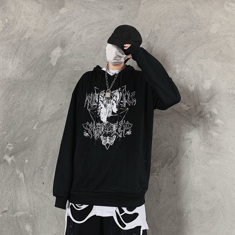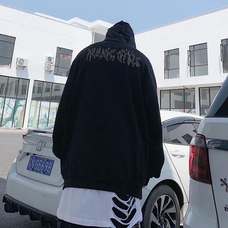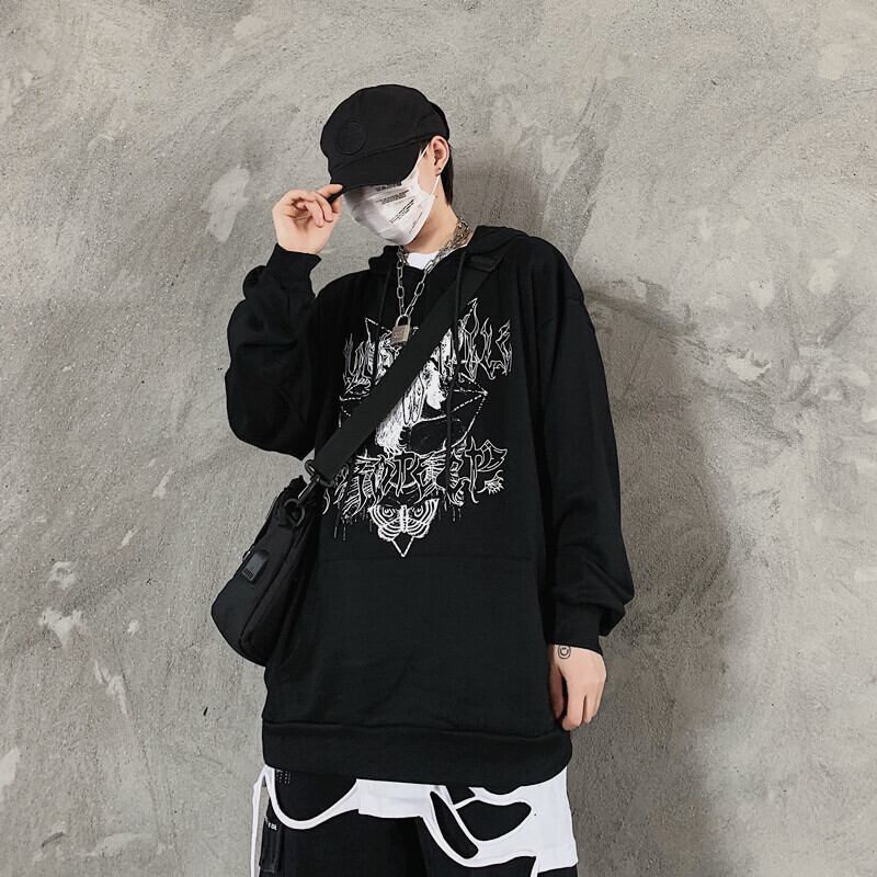 2020年秋新バージョンinsレトログラフィティフード付きトップルーズブラックセータージャケットメンズ&レディーストレンド Brother_is_Style86733348629