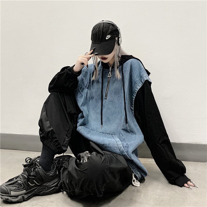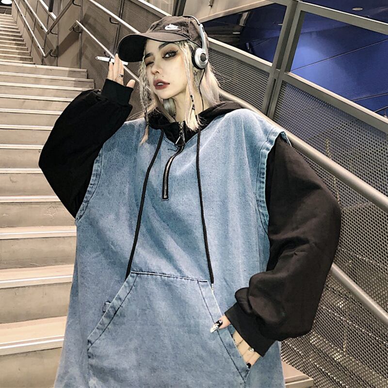 2020年秋新バージョンのインステッチデニムセータージャケットルーズ厚めフード付き長袖トップスレディーストレンド Brother_is_Style47581776491