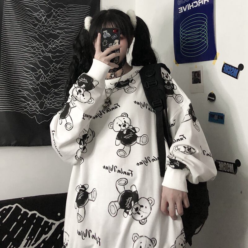 インネットセレブベアホワイトプルオーバーセータールーズラウンドネック長袖トップ女性トレンドの2020年秋バージョン Brother_is_Style89846085053