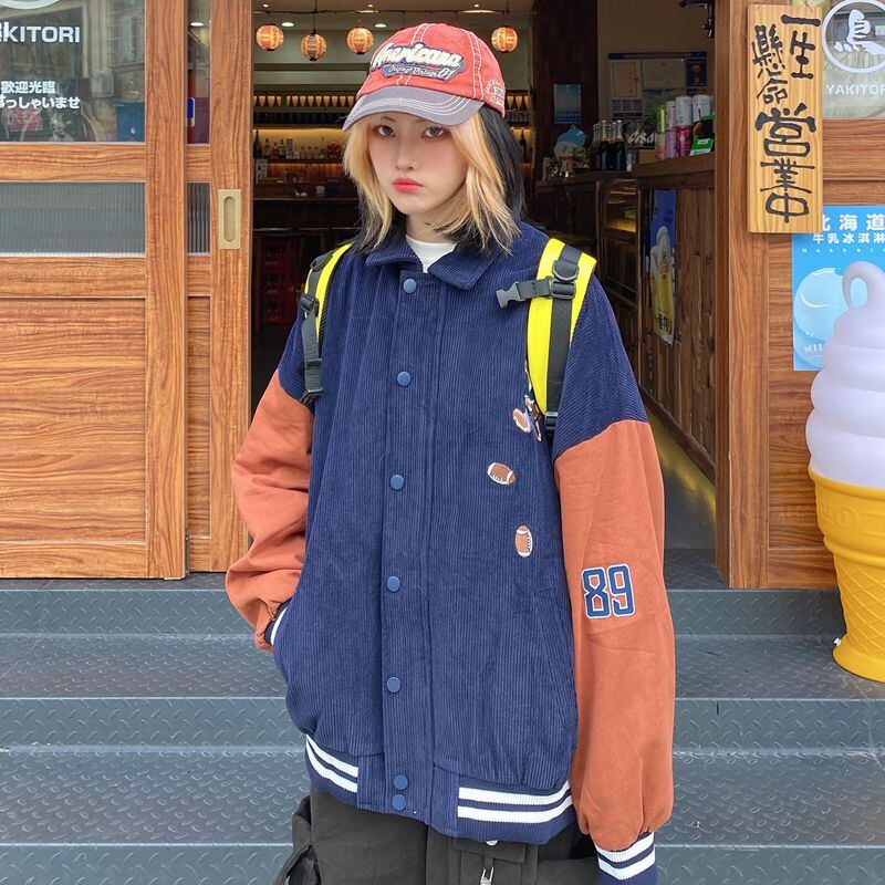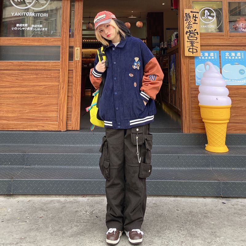 コーデュロイジャケットレディース2020年秋冬新バージョンのインコントラストベア刺繍ルーズベースボールユニムジャケットトレンド Brother_is_Style37954740083