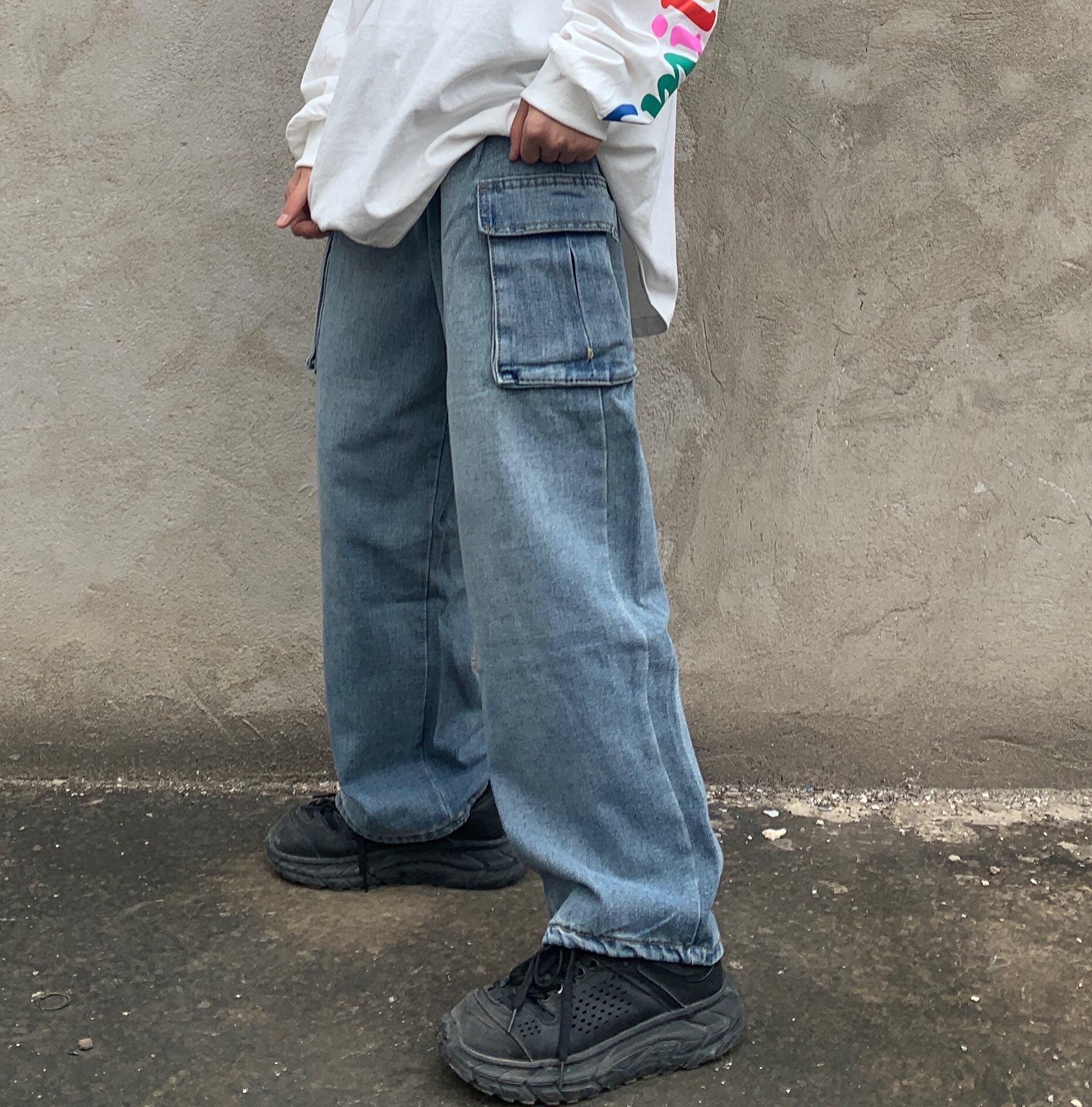 パンツレディース2020新バージョンのinsレトロツーリングストレートワイドレッグパンツルーズで薄い学生ジーンズトレンド Brother_is_Style3033700904