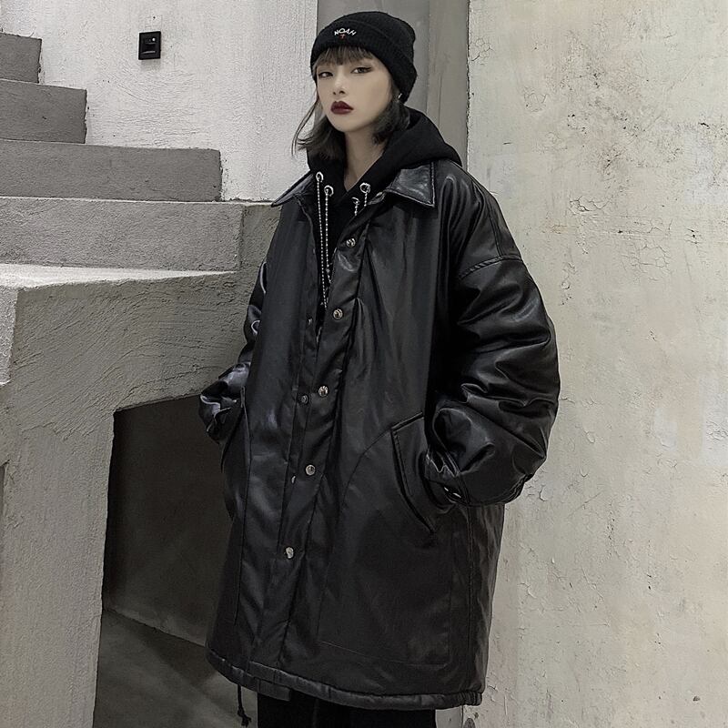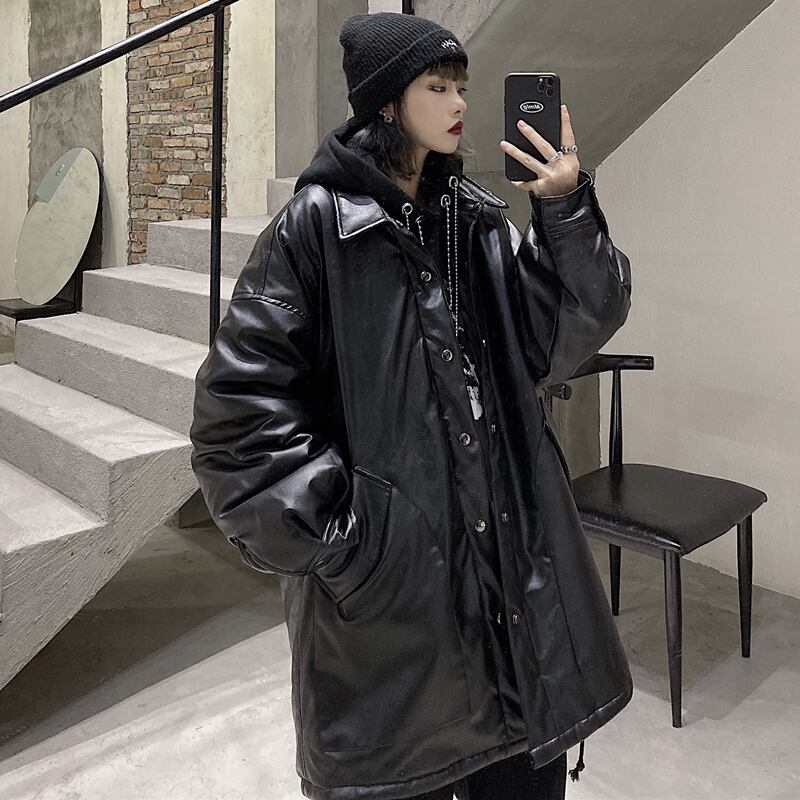 レザージャケットの女性2020年冬の新しいバージョンのインレトロミドルレングスブラックワイド厚手のパッド入りコットンパッド入りの服 Brother_is_Style26176554885