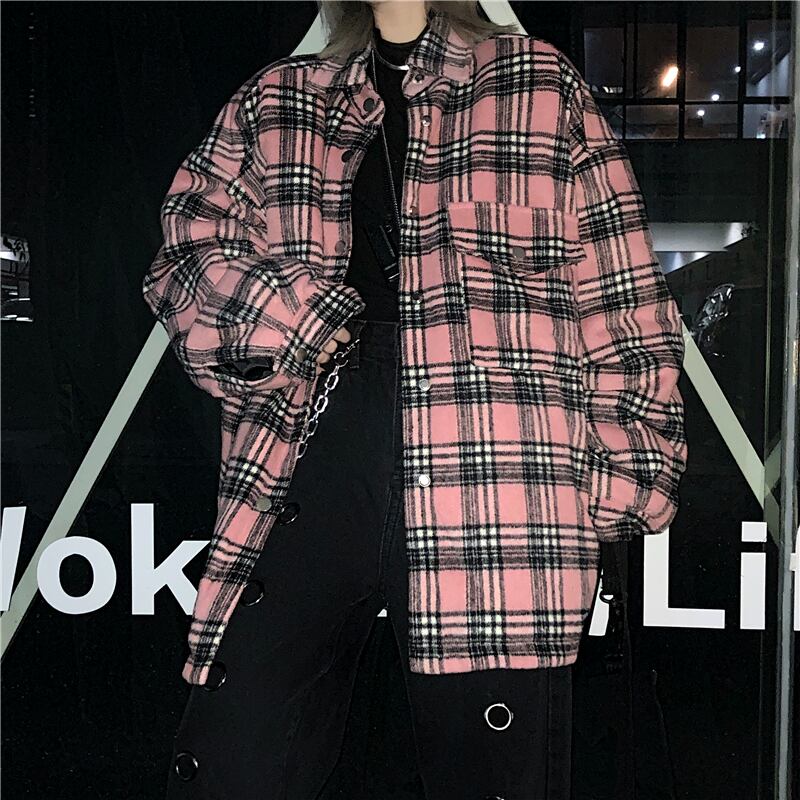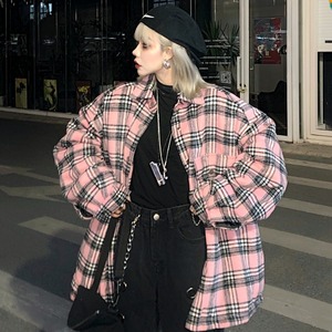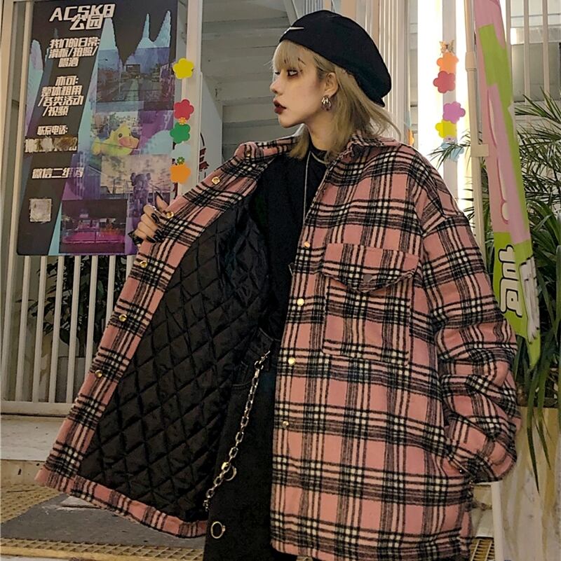 インレトロピンクチェック柄ウール厚手のパッド入りコートルーズコートジャケット女性トレンドの2020年秋冬バージョン Brother_is_Style61549035549