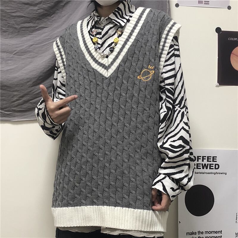 2020年秋バージョンインレトロカラーマッチングセーターベストメス+ルーズ長袖シャツトップツーピース Brother_is_Style45653066268