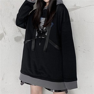 2020年の新しい秋冬バージョンinsストリートフェイクツーピース長袖トップコート女性ルーズプラスフリースフード付きセーター Brother_is_Style96824785104