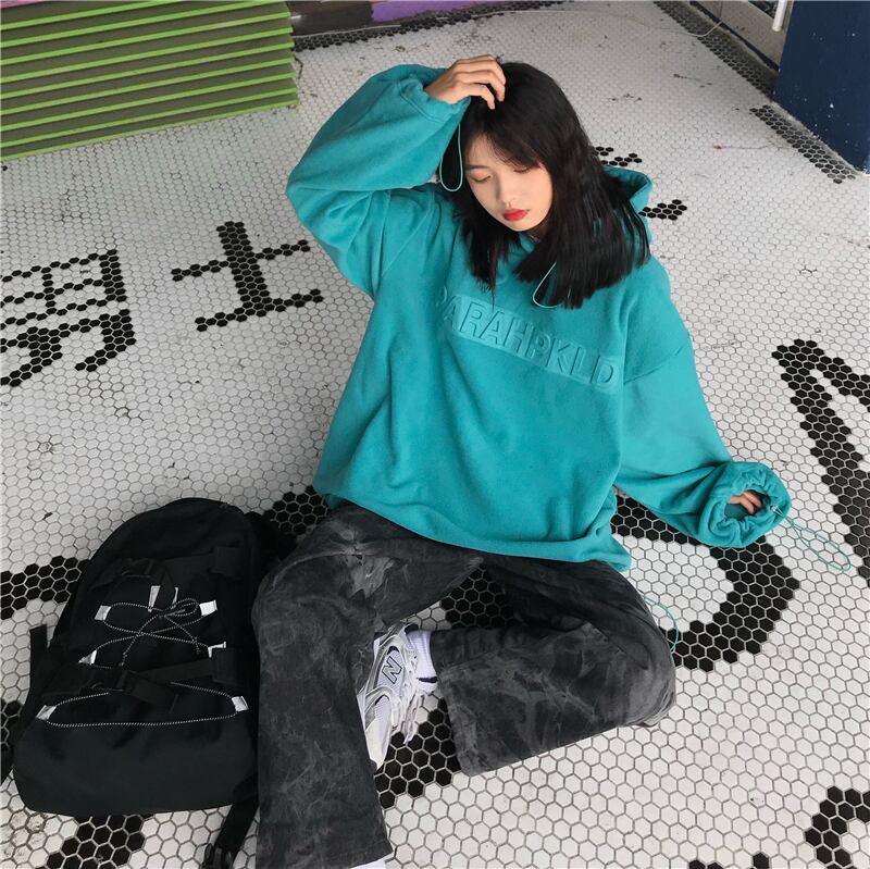 セーターの女性2020新しい秋と冬のバージョンins香港スタイルの手紙ルーズフリースフード付き厚手のコート Brother_is_Style38719371759