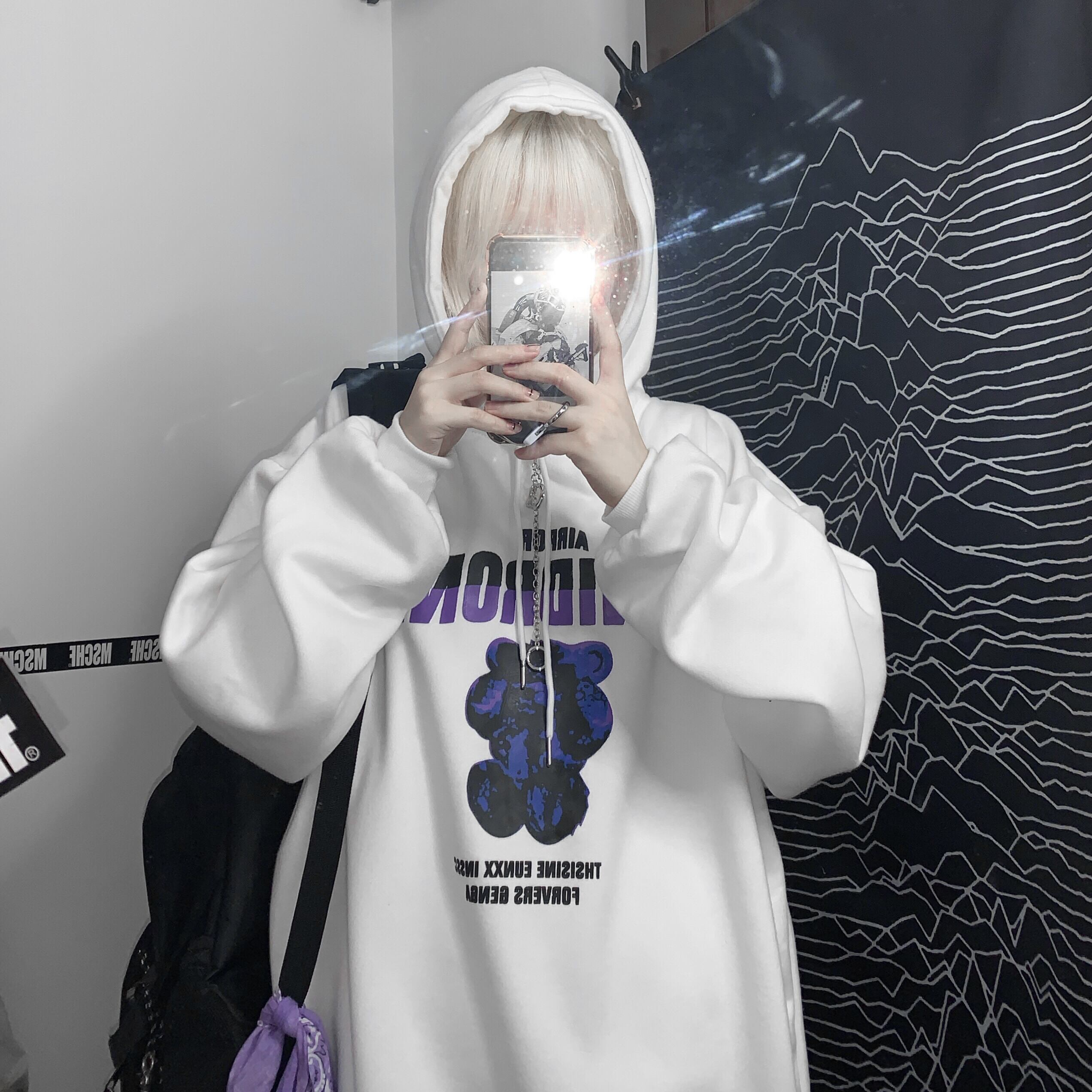 ジャケットレディース2020年秋冬新バージョンのインレトロベアヒットカラートップルーズプラスベルベットフード付きセータートレンド Brother_is_Style51461265553