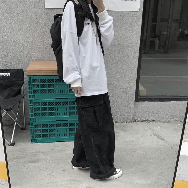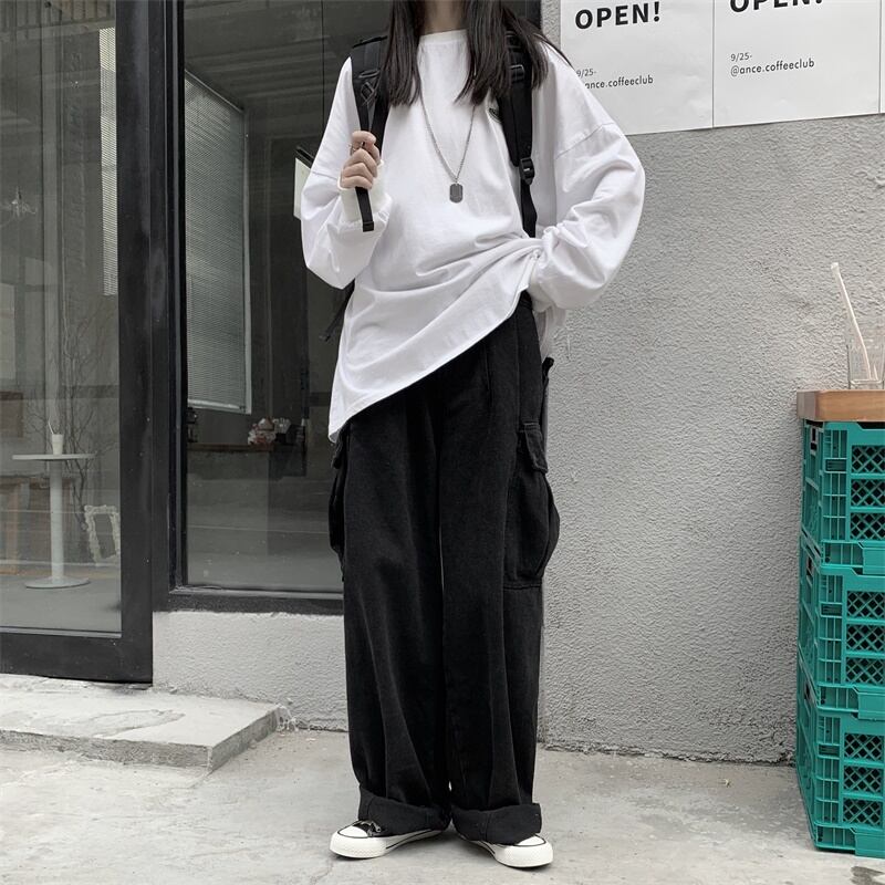 パンツ女性2020新バージョンinseseツーリングストレートワイドレッグパンツルーズで薄いブラックジーンズトレンド Brother_is_Style38382283074