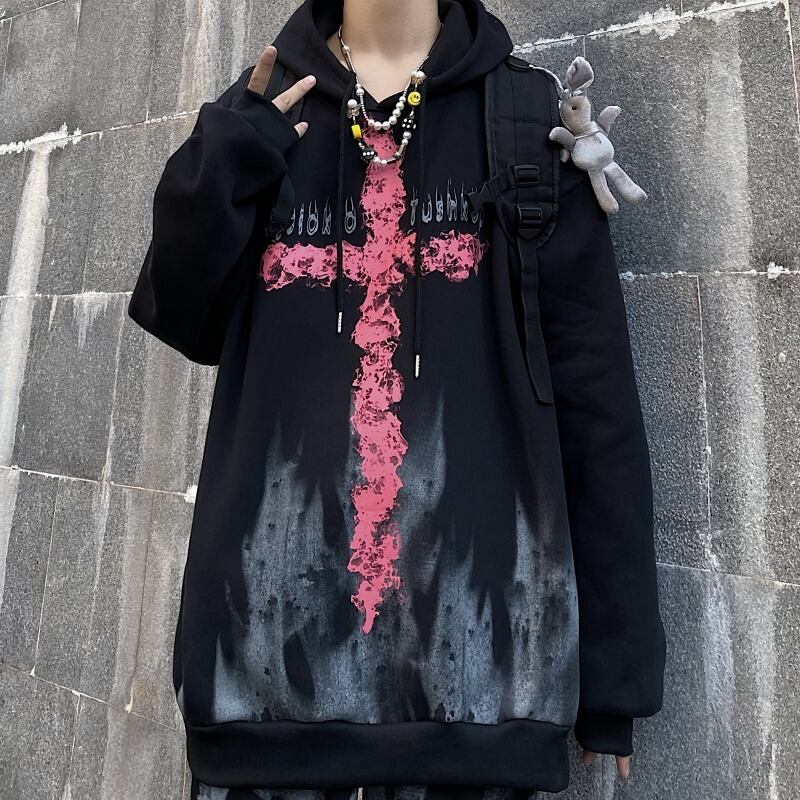 インダークグラフィティカップルフード付きトップルーズプラスベルベットセータージャケット女性トレンドの2020年秋冬バージョン Brother_is_Style17175499809