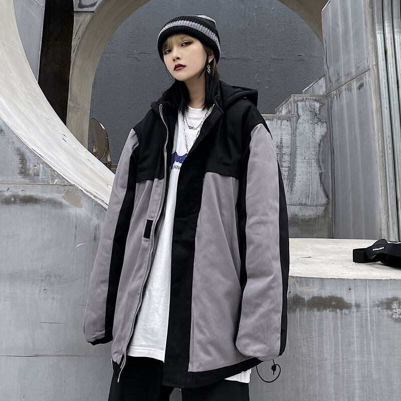 コットンパッド入りジャケットレディース2020年冬新バージョンインルーズコントラストカラーフードプラスコットン厚手のコートトップス Brother_is_Style77049305745