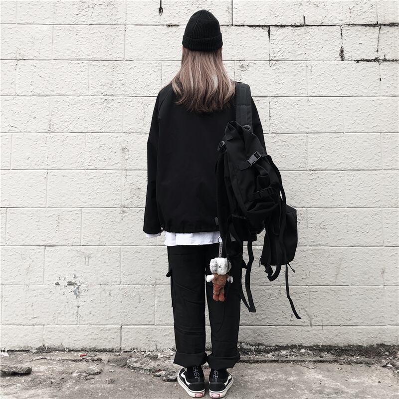 2020年女性の新しい秋のバージョンinsブラックツーリングジャケットトップルーズBFハイカラーウインドブレーカージャケットトレンド Brother_is_Style5709582915