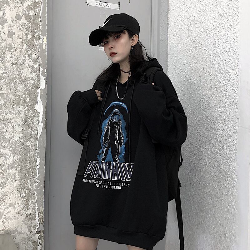 フリースセーターの女性2020年秋冬新バージョン原宿スタイルルーズブラック厚手フード付きジャケットトレンド Brother_is_Style19691560853