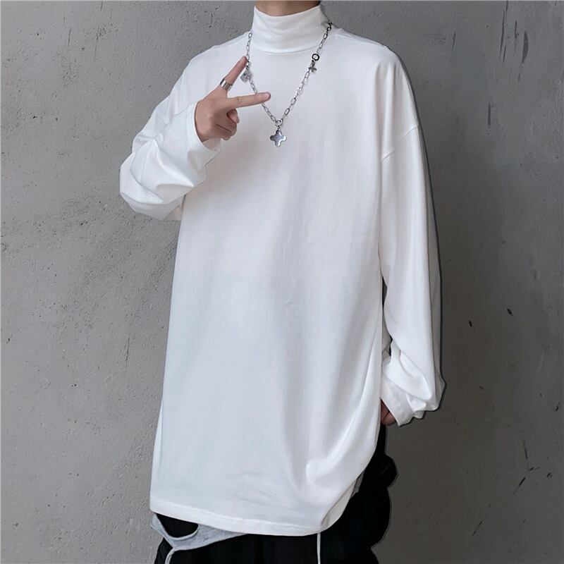 2020年秋新バージョンのインレトロホワイトハイネックボトミングトップルーズワイルド長袖Tシャツメンズ&レディース Brother_is_Style55399963404