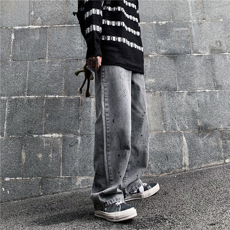 パンツレディース2020年秋冬新バージョンのインレトロスプラッシュインクジーンズルーズハイウエストストレートワイドレッグパンツ Brother_is_Style68089022515