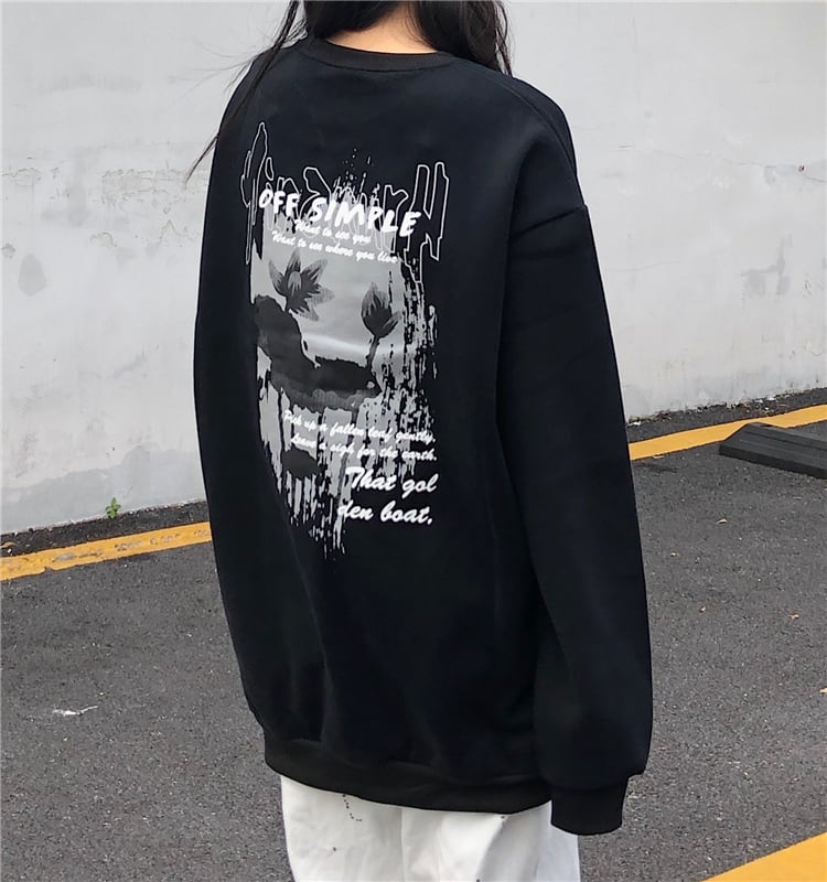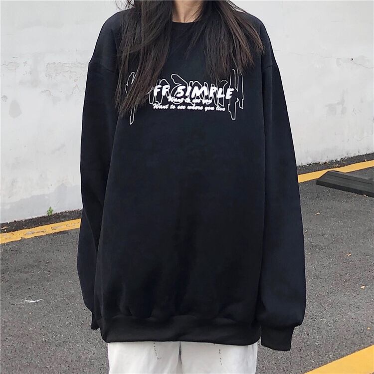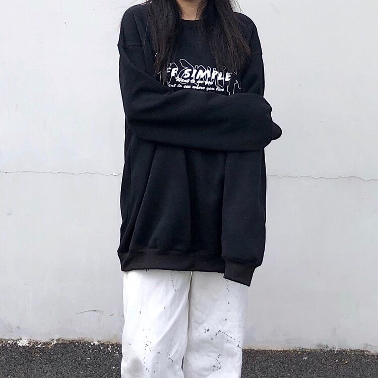 フードレスセーター女性2020年秋冬新バージョンインストリートグラフィティホワイトルーズプラスフリースプルオーバートップトレンド Brother_is_Style71222954960