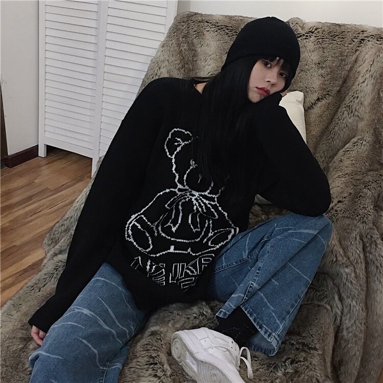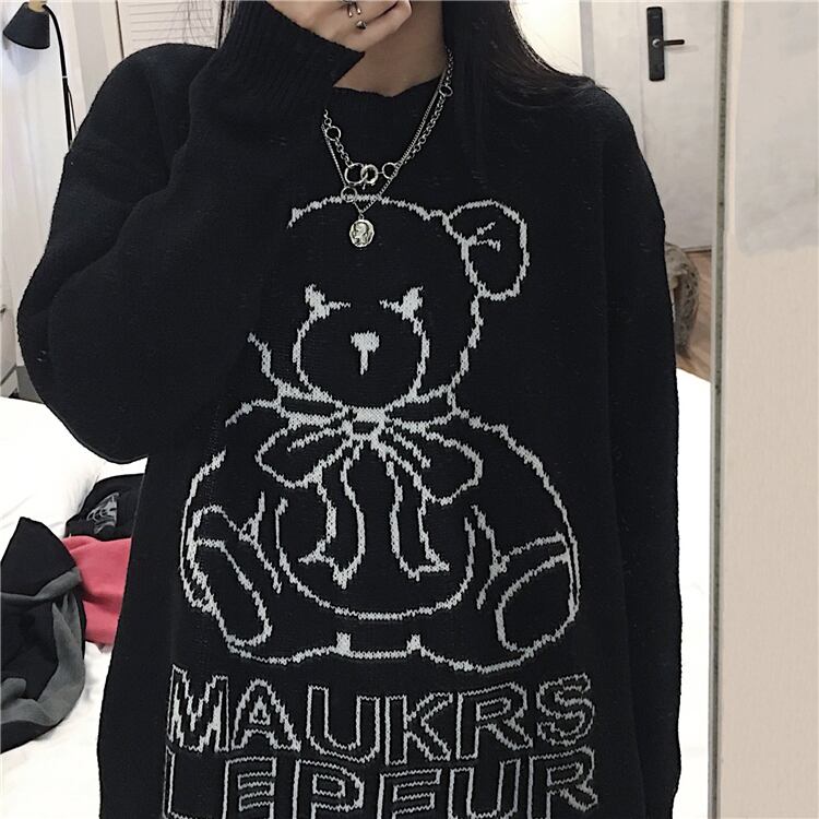 ニットセーターの女性2020年秋冬新バージョンins怠惰なクマブラックルーズプルオーバーセーターコートトレンド Brother_is_Style6018299408