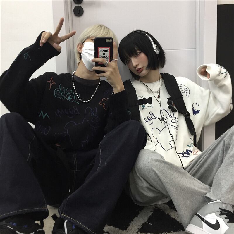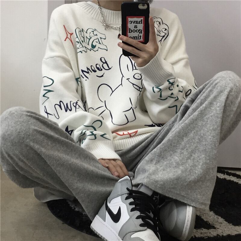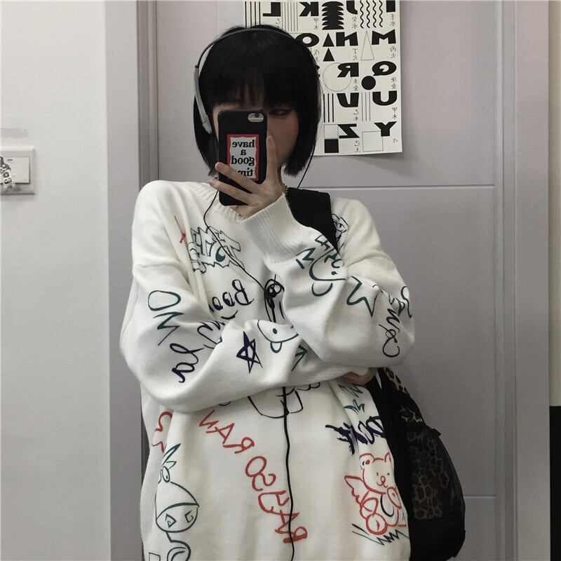 怠惰なセーターの女性2020年秋冬新バージョンins漫画落書きルーズプルオーバーセータートップトレンド Brother_is_Style73996084910