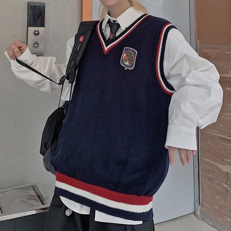 トップス2020新しい秋の服バージョンins香港スタイルのコントラストセーターセーターベスト女性ルーズベストベスト Brother_is_Style11830753000
