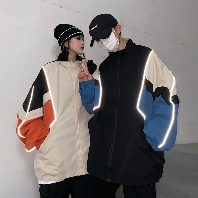 2020年秋新バージョンのイン反射ステッチコントラストジャケットジャケットルーズカップルウインドブレーカージャケット女性トレンド Brother_is_Style7380866011