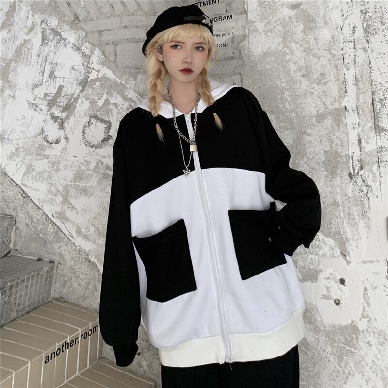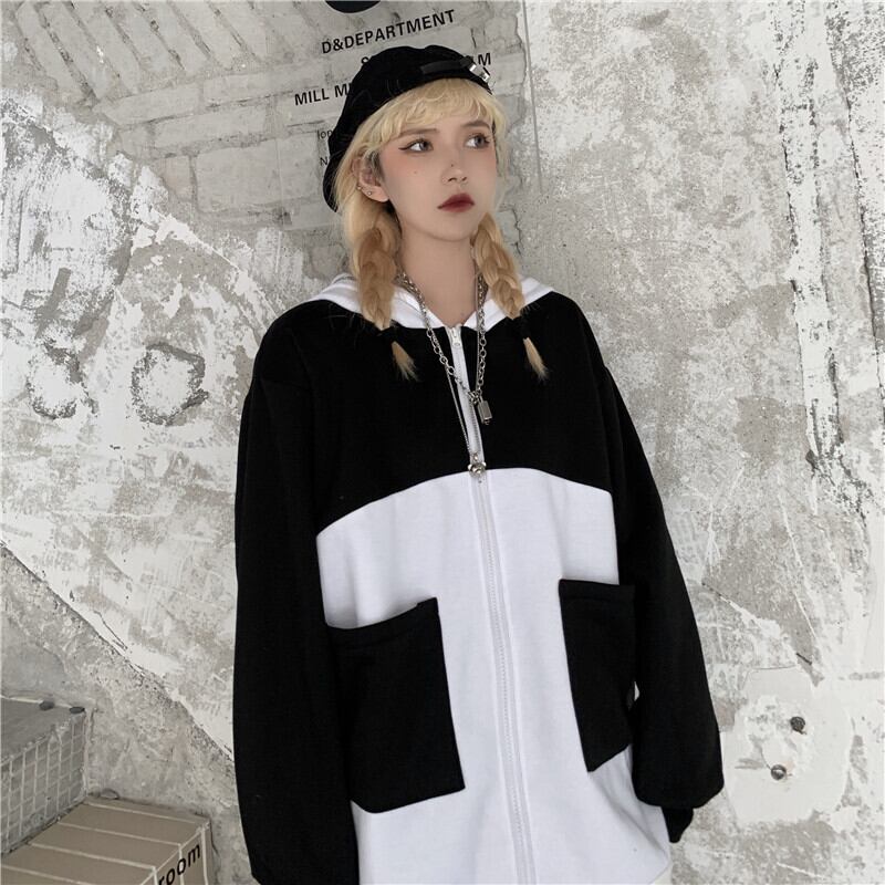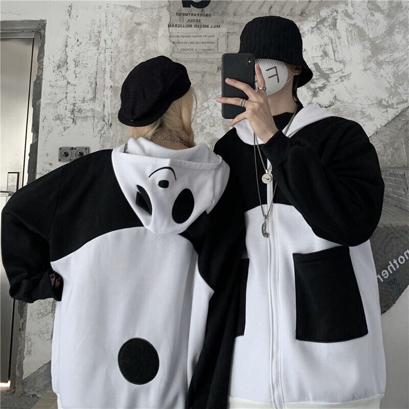 2020年秋冬の新バージョンのインコントラストパンダ刺繡フード付きセータールーズプラスフリースジャケットメンズとレディース Brother_is_Style46152849988