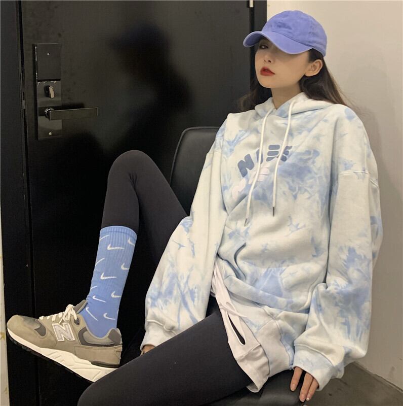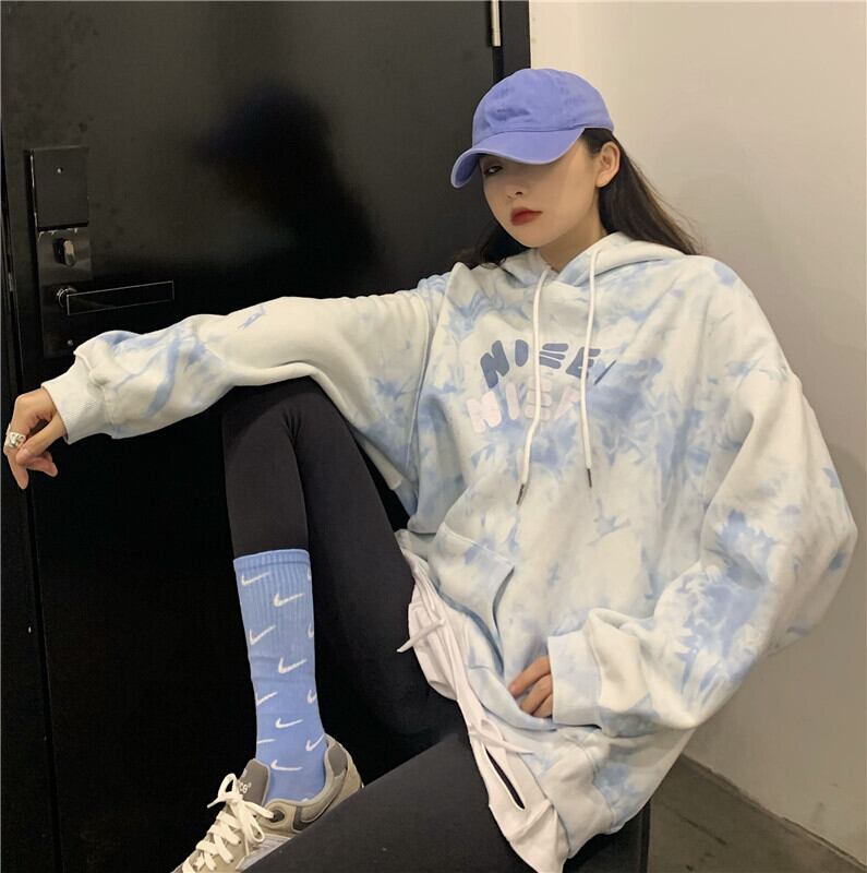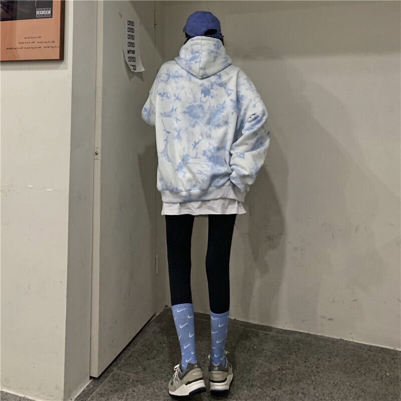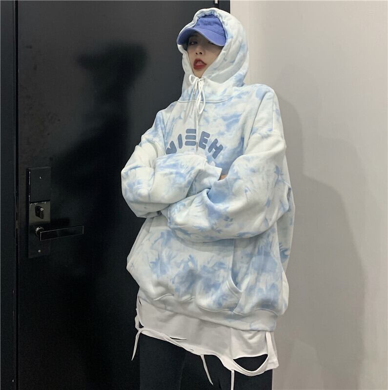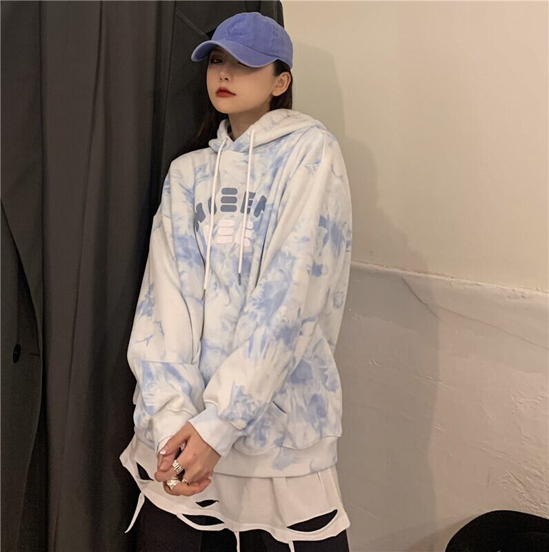 フリースセーターレディース2020年秋冬新バージョンインブルー絞り染めレタールーズフード付きジャケットジャケットトレンド Brother_is_Style1078905861