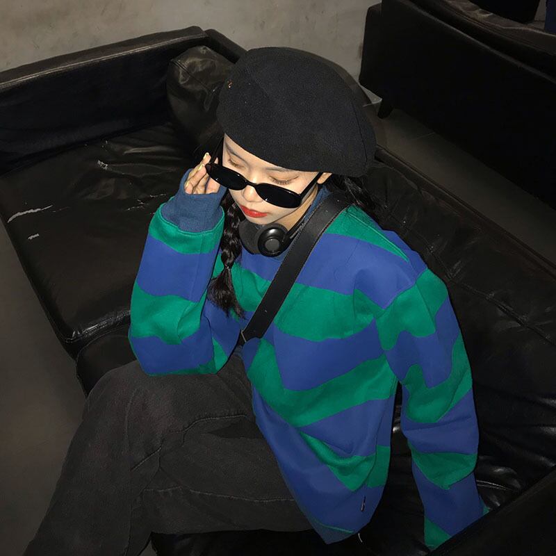 2020年秋冬の新バージョンのinsカラーマッチングストライプ長袖シャツ学生ルーズプラスベルベットプルオーバーセーター女性トレンド Brother_is_Style90362175882