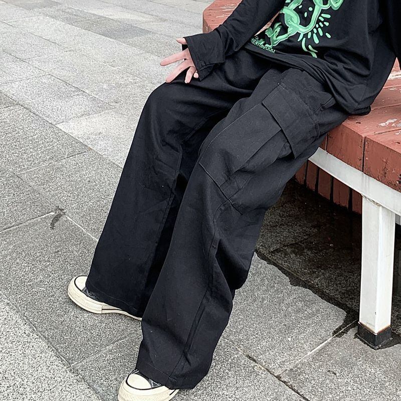 2020年新バージョンのインレトロブラックルーズスチューデントツーリングロングパンツストレートワイドレッグカジュアルパンツレディーストレンド Brother_is_Style37739952040