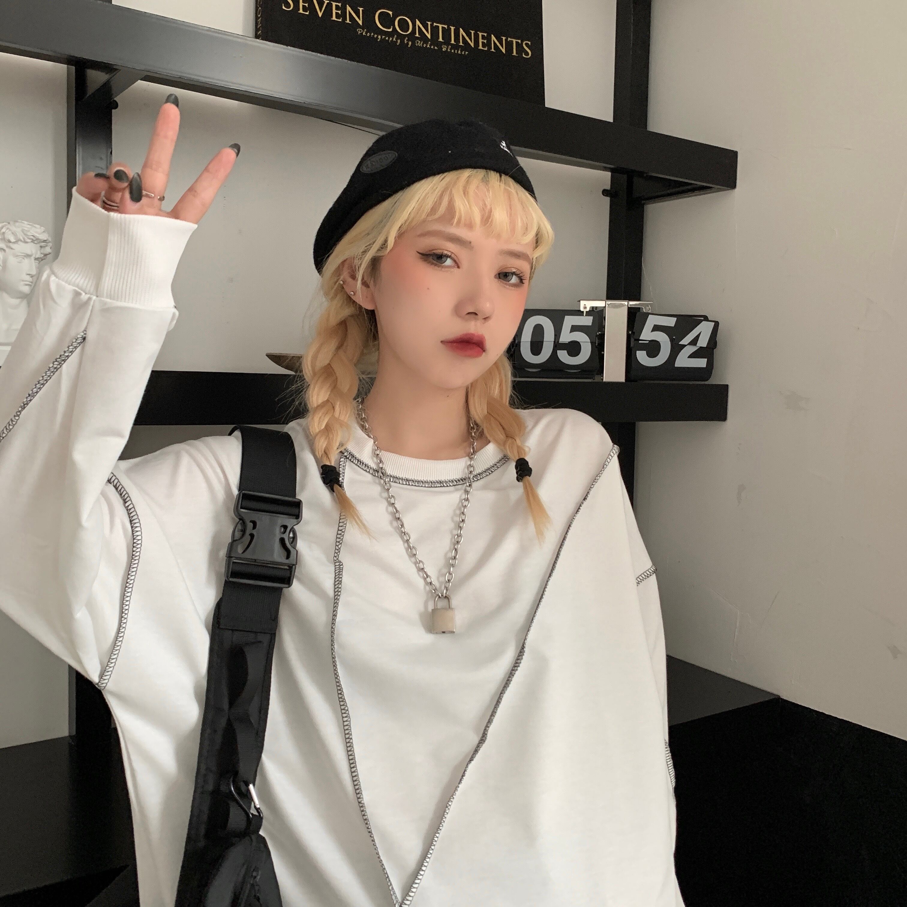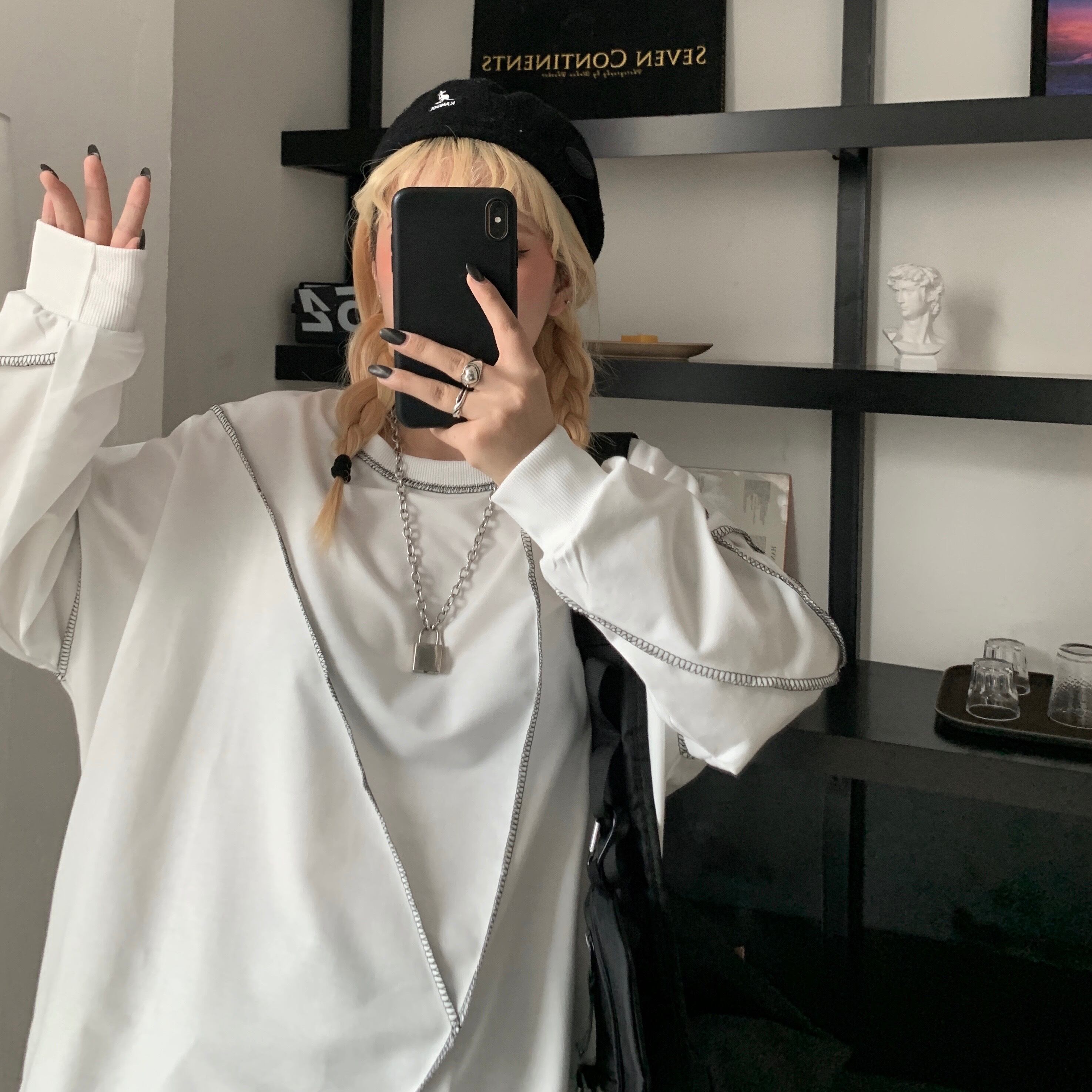 2020年秋新作女性バージョンインレトロストリートパーソナリティホワイトトップルーズ学生長袖Tシャツトレンド Brother_is_Style90869926571