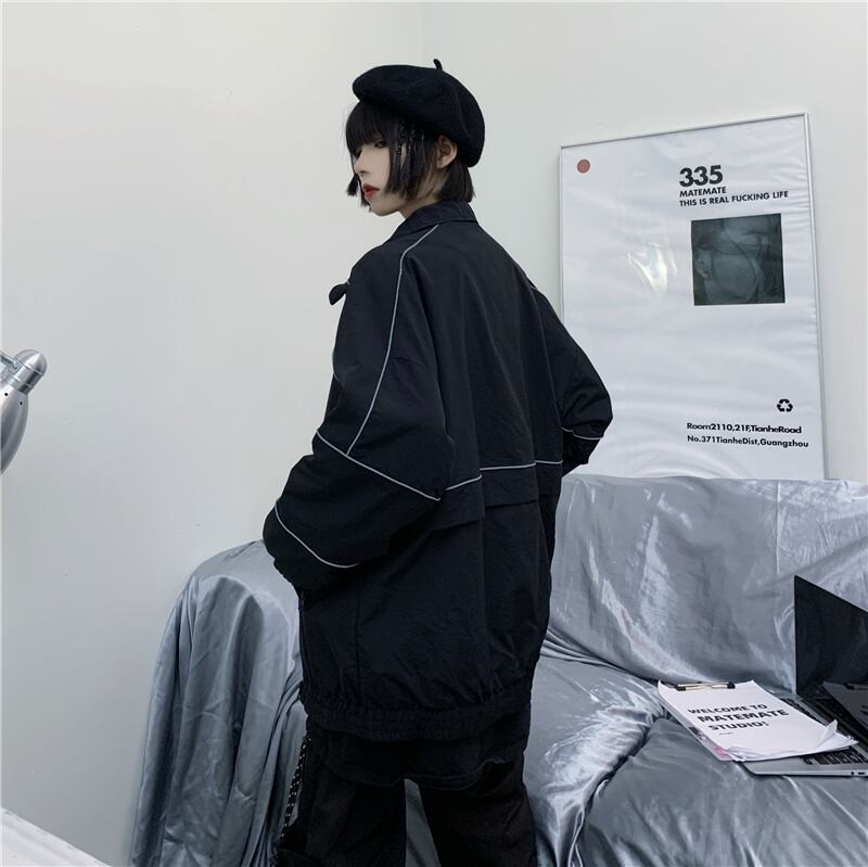 2020年ウィメンズニュー秋冬バージョン原宿風リフレクティブツーリングジャケットルーズブラックトップコートトレンド Brother_is_Style93613420644