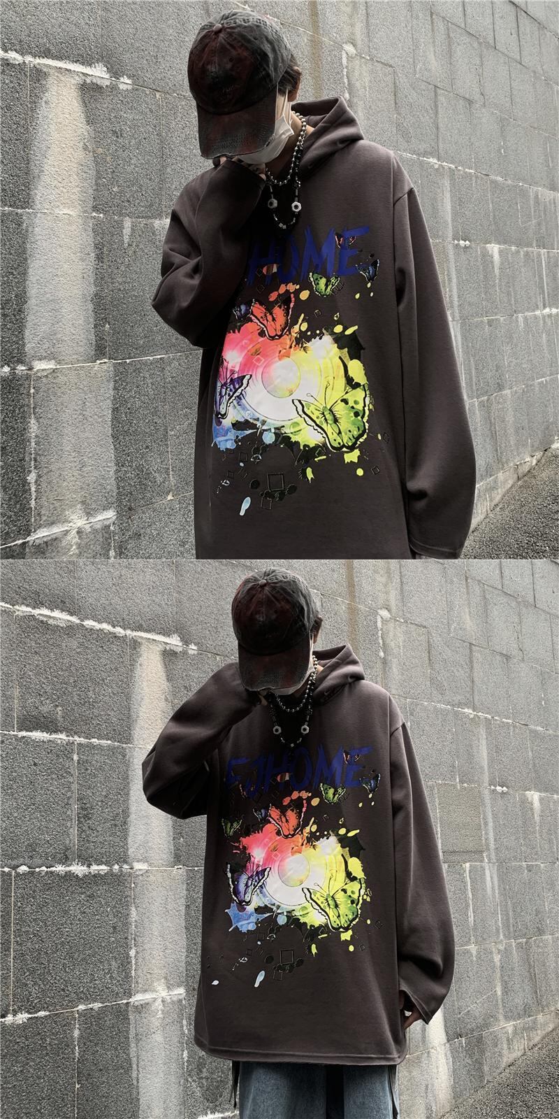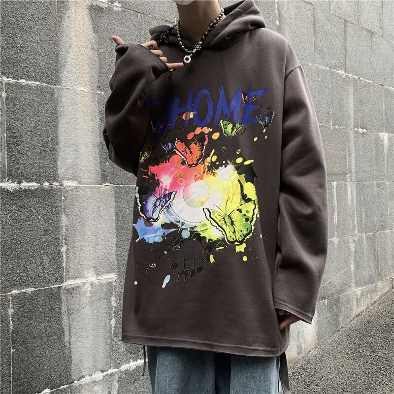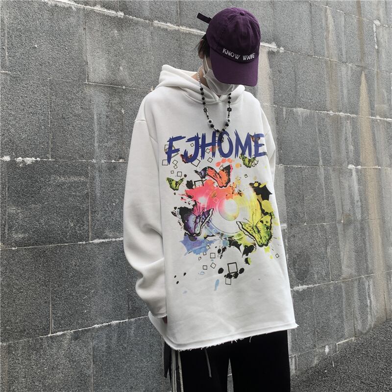 2020年秋冬新バージョンインストリートバタフライグラフィティフード付きセータールーズプラスベルベット厚手のコートの男性と女性 Brother_is_Style31771745217