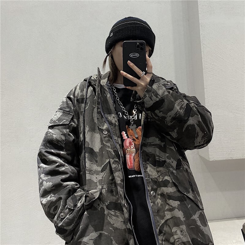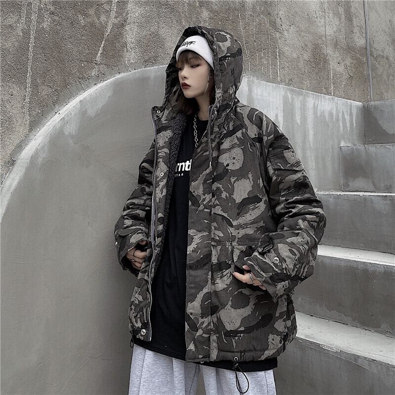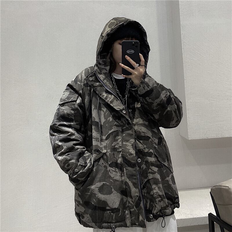 コットンジャケットレディース2020年冬新バージョンのinsレトロカモフラージュルーズフード付き厚手のラムウールコート Brother_is_Style98840817573