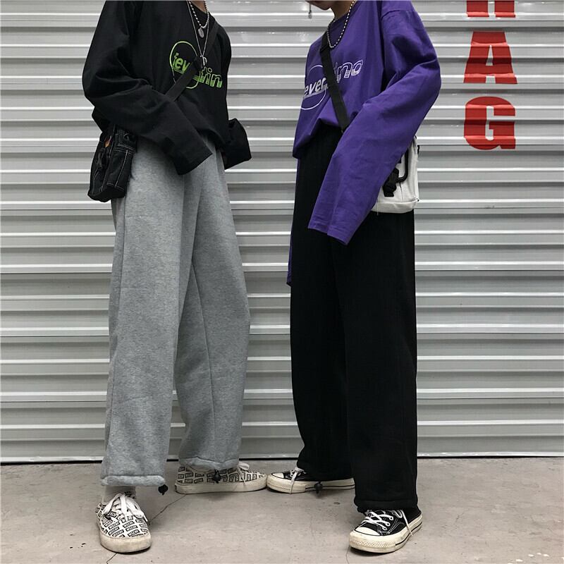 パンツレディース2020年秋冬新バージョンのinsソリッドカラーオールマッチカジュアルパンツルーズプラスベルベット厚幅ワイドレッグパンツ Brother_is_Style32657372372