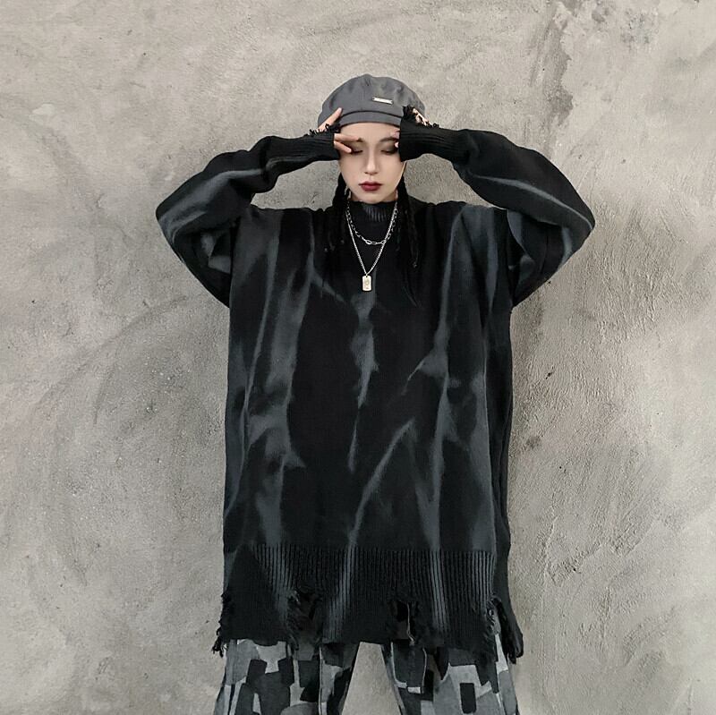 2020年の新しい秋冬バージョンのins怠惰な風が裂いたニットセータートップルーズブラックセータージャケット女性のトレンド Brother_is_Style65170539402