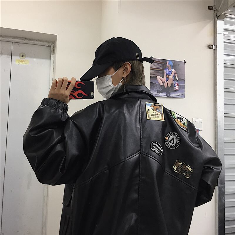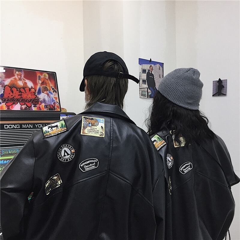 2020年の新しい秋と冬のバージョンinsカップル機関車服革ルーズブラックレザージャケットショートコート女性トレンド Brother_is_Style33428189322