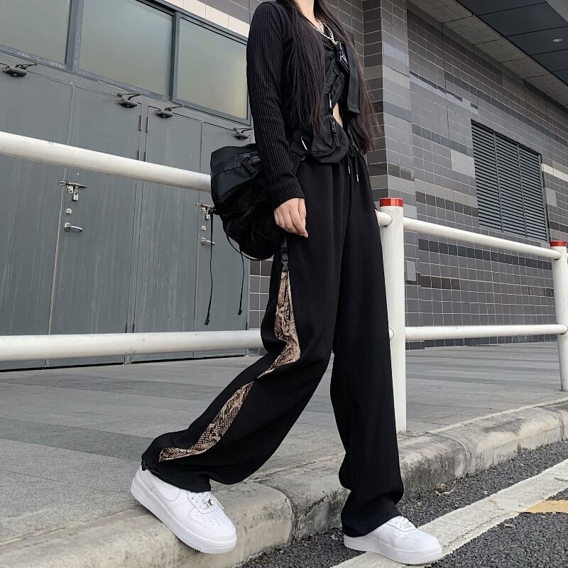 パンツレディース2020新バージョンインヒップホップブラックストレートワイドレッグパンツルーズでシンハイウエストカジュアルパンツトレンド Brother_is_Style62662906026