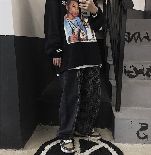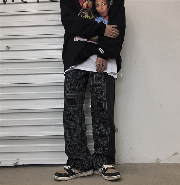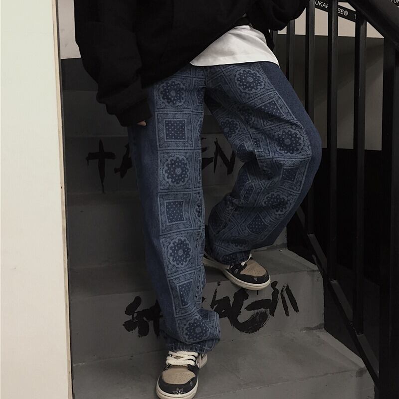 パンツ オータムウィンタースタンダードFlowerデザイン ルーズジーンズ レトロ 秋物 冬物 フラワーデザイン Brother_is_Style2909327875