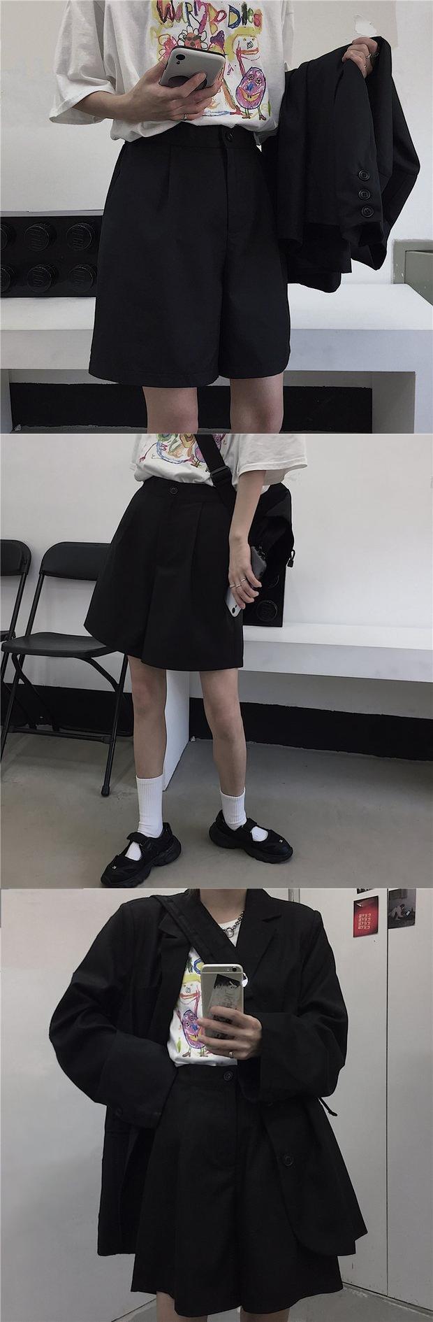 色:黒のブレザー,グレーブレザー,黒のショートパンツ,グレーパンツ