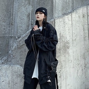 オータムスタイルブラックジャケット トップス ルーズギャザー かわいい 秋物 Brother_is_Style84848338429
