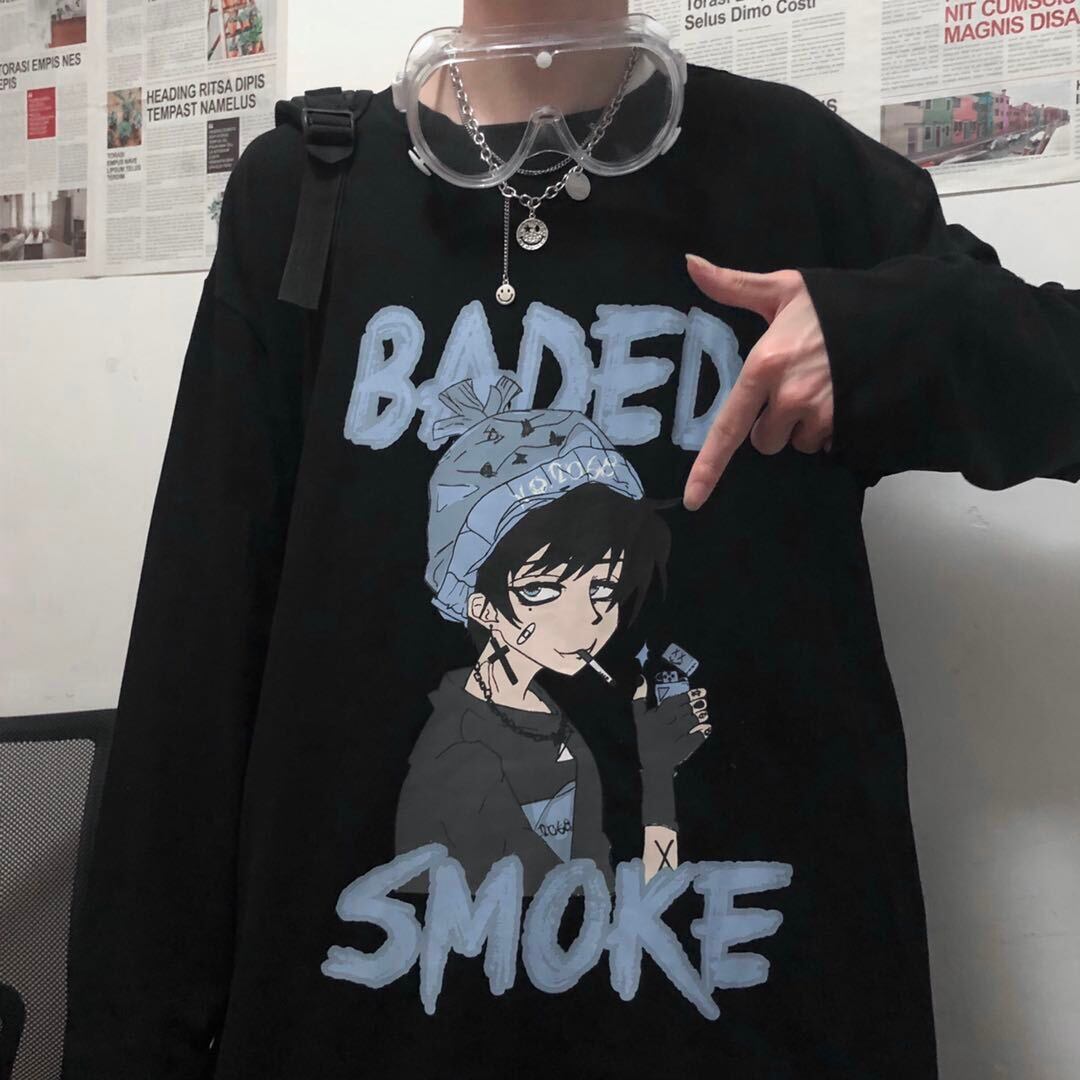 オータムスタイルダークプリントトップス ルーズTシャツ ロング かわいい 秋物 Brother_is_Style3743590581