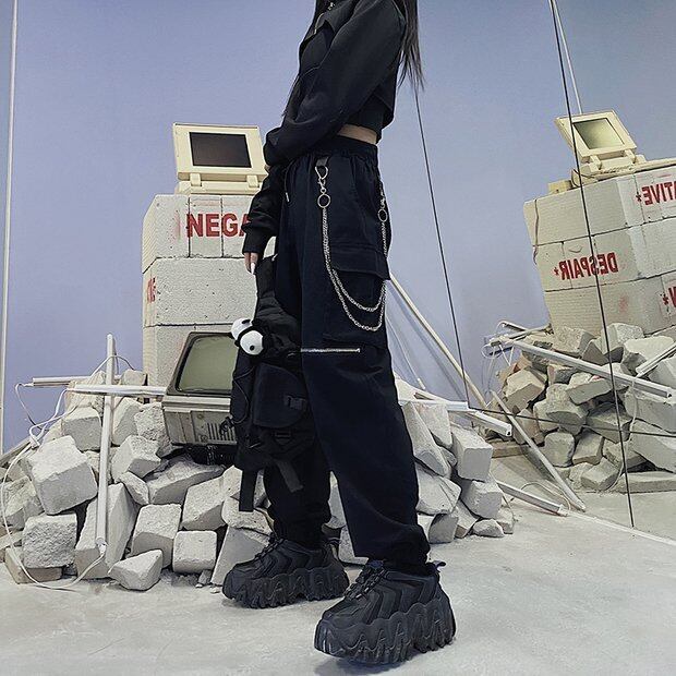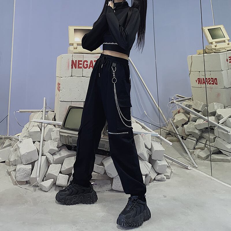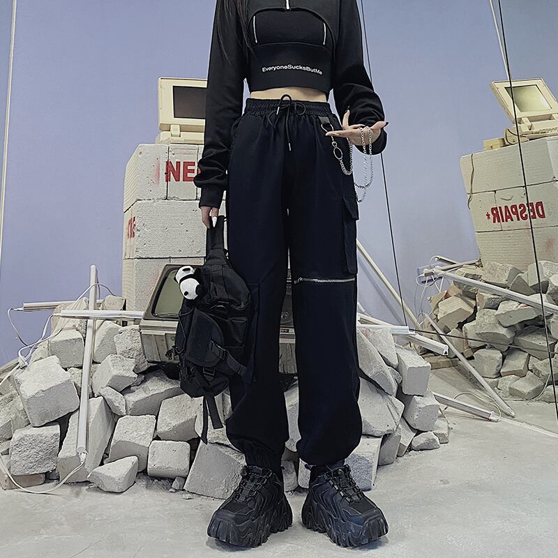 2020年新バージョンのインダークパンツ女性ルーズウエストハイウエストオーバーオールパンツブラックカジュアルパンツトレンド Brother_is_Style57436133434