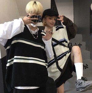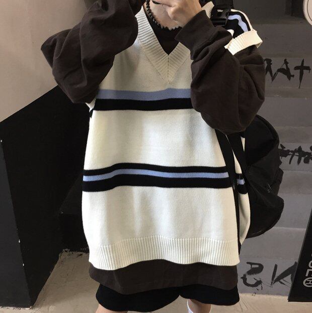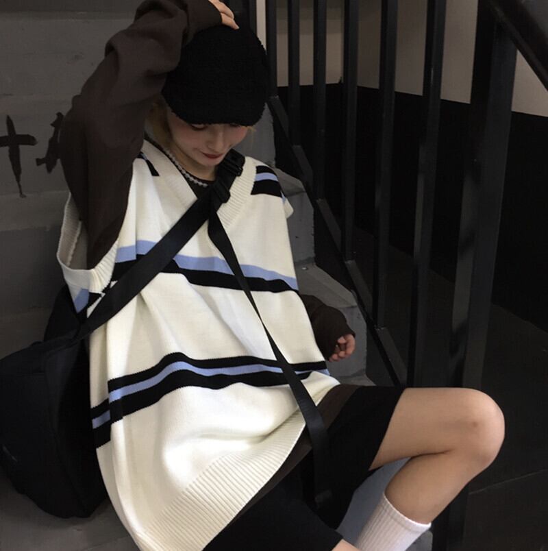 スタンダードVネックニットセーター ルーズノースリーブレディース レトロ オータム 秋物 ウィンター 冬物 Brother_is_Style35805622018