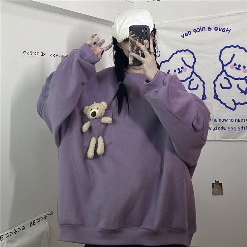 ラウンドネックセーター スタイルポケットルーズソリッド カラーベルベットトップス ロング かわいい Oネック ソリッドカラー Brother_is_Style37582851476