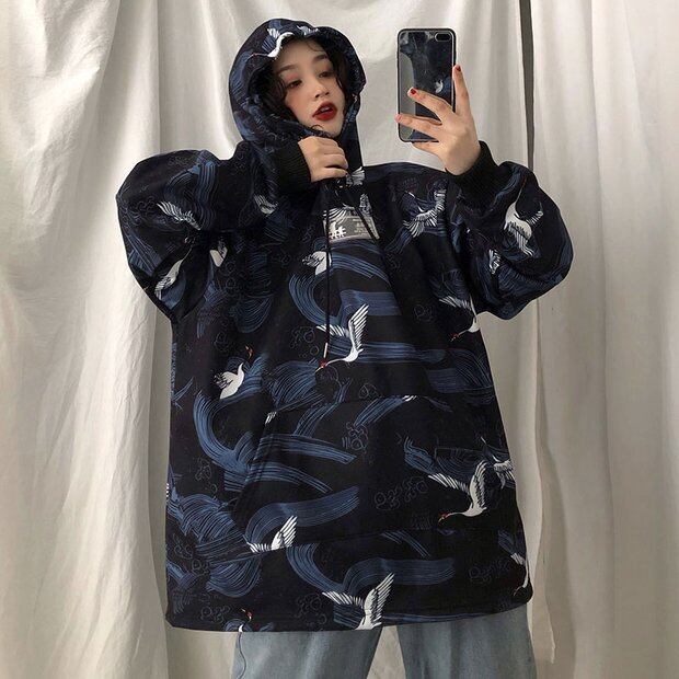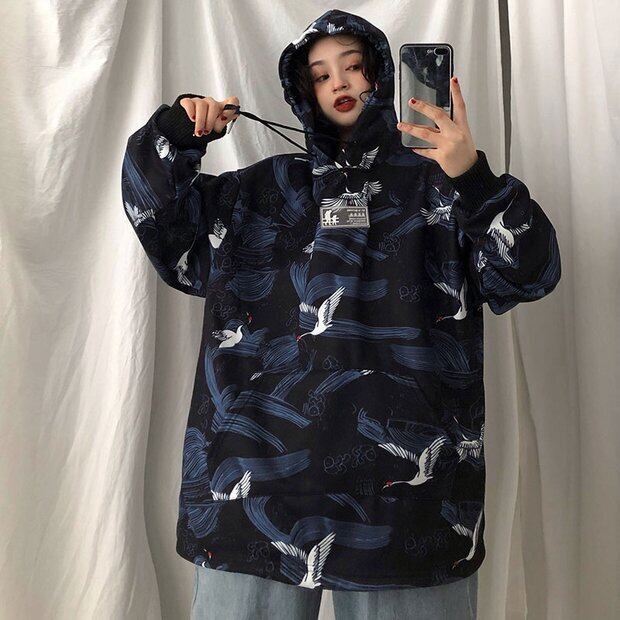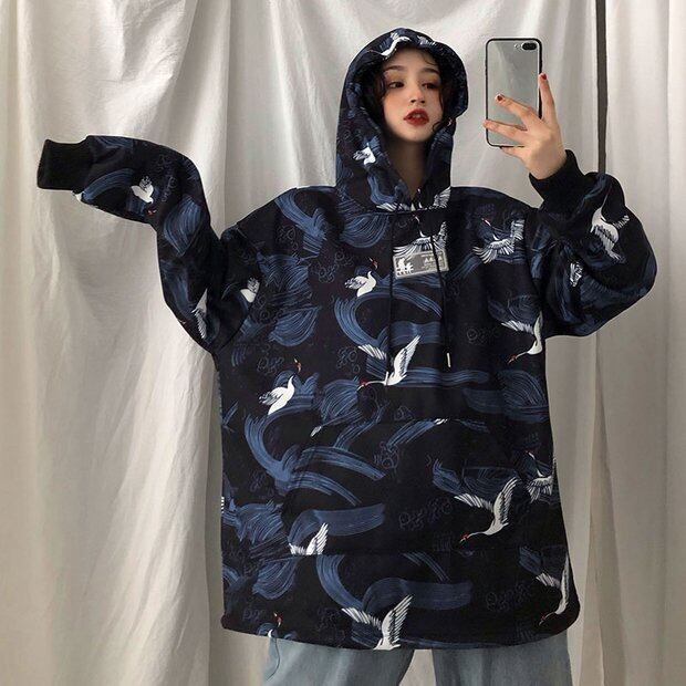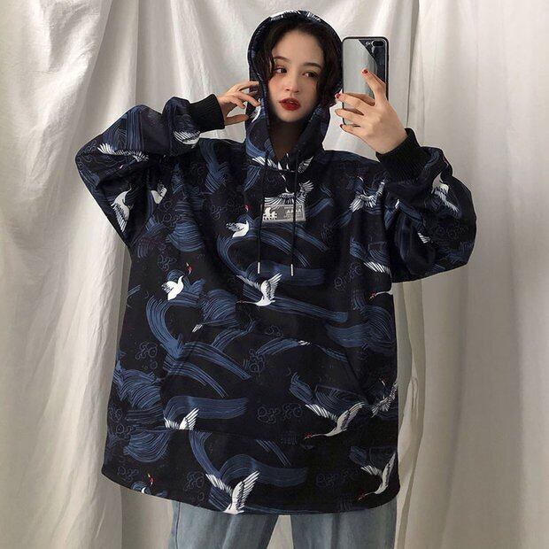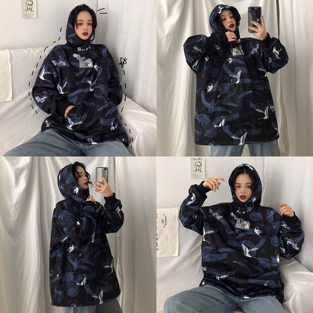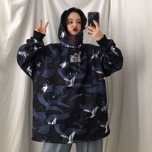 スタンダードプリント柄シャツ ルーズフードベルベットセーター レディース ロング レトロ オータム 秋物 ウィンター 冬物 Brother_is_Style45619072658