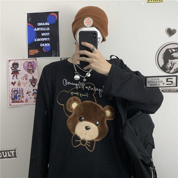 Tシャツ オータムルーズレッド刺繍プリント柄トップス ロング 秋物 Brother_is_Style24052336439