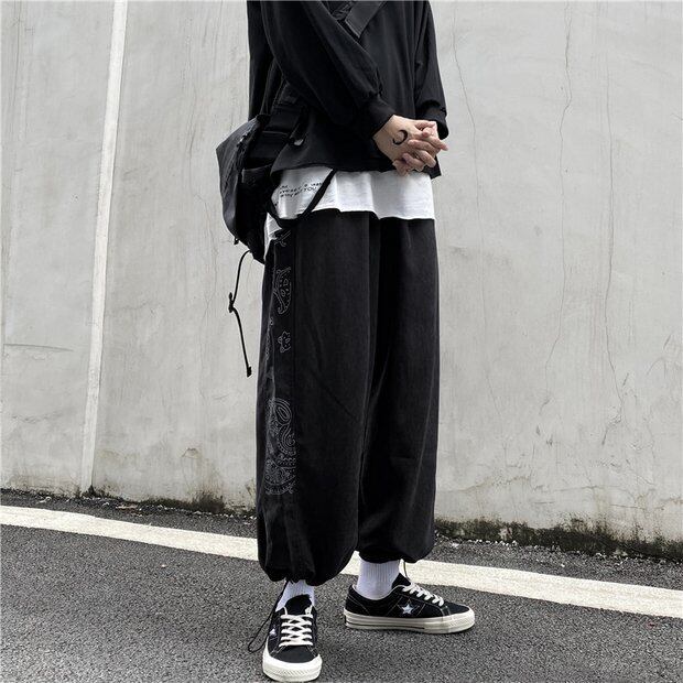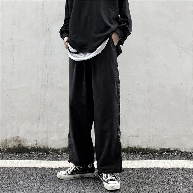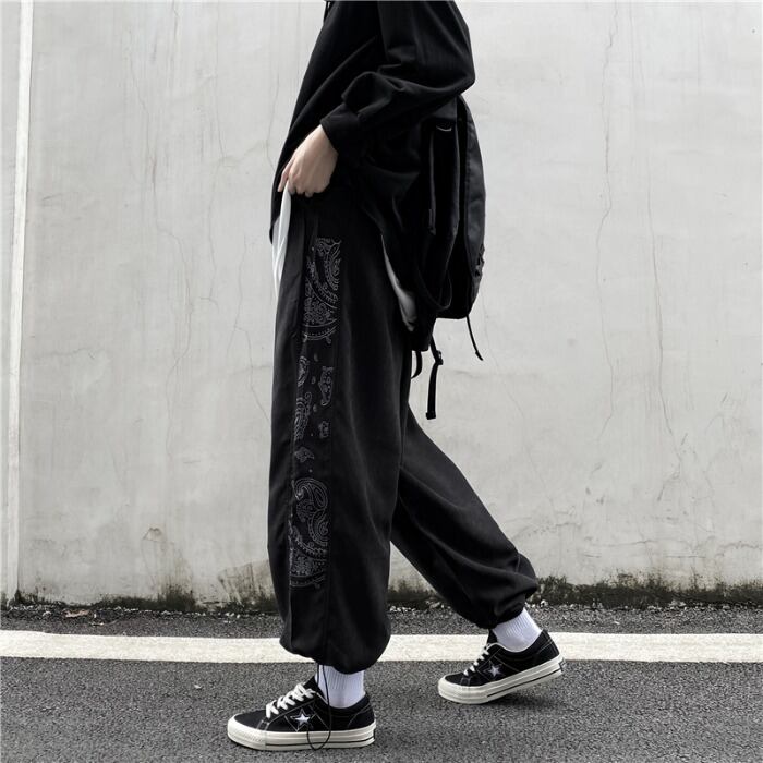 スタイルスタンダードカジュアルパンツ ルーズワイドレッグブラックレディース レトロ かわいい ワイドパンツ Brother_is_Style73977088052