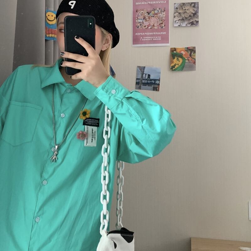 2020年秋新バージョンのinsワイルドホワイト長袖シャツルーズカジュアルシャツトップスメンズ&レディース Brother_is_Style97721887750